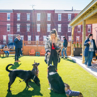 “ PHILADELPHIA, PA (Fairmount): we love places that are specifically catered to dogs where pet parents can have a ton of fun too and The Boozy Mutt is a perfect dog bar! The Boozy Mutt is an off-leash dog park where both dogs and humans can eat and drink from the bar & grill. The food and drink menu is quite big (with gluten free, vegetarian, and vegan options clearly labeled), and the Mutt Menu has options like biscuits, burgers, pumpkin pie, a bark-cuterie plate full of all selections, and more! The drink menu includes cocktails, beer, seltzers, and non alcoholic choices. The outdoor space has a turfed yard, umbrellas for shade, adirondack chairs, covered high-top seating, TVs, and heaters. The indoor space has a lot of seating and the window to order food and drinks. There is also a 2nd floor mezzanine space, but it was booked for a private dog birthday party when we were there. We LOVE that dogs are allowed inside. There are "rufferees" to keep an eye on the pups and clean-up, but always keep an eye on your dog. You can even give your dog a bath at their self-serve washing stations for an extra fee. There are events throughout the month and they can host parties! If it is your first time visiting, admission is free. Thereafter, there is a day pass charge between $10-15 per dog, depending on the day (no charge for humans). You can also purchase a reasonably priced monthly or yearly membership. Prior to your visit, make sure you register your dog online and provide proof of vaccinations (rabies, parvo, bordetella). All dogs older than 9 months old must be fixed. If you do not have a dog, you can still enjoy the space and get your doggy fix. ”
